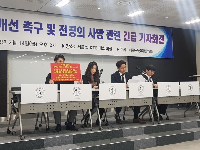 ´ëÀüÇùÀº 14ÀÏ ¿ÀÈÄ 2½Ã ¼¿ï¿ª KTX ´ëȸÀǽǿ¡¼ ±âÀÚȸ°ßÀ» ¿°í, 80½Ã°£ ±Ù¹« µî Àü°øÀǹý°ú °ü·ÃÇØ Á¤ºÎÀÇ Ã¥ÀÓ ÀÖ´Â ½ÇÅÂÁ¶»ç¿Í Á¶Ä¡¸¦ ¿ä±¸Çß´Ù.