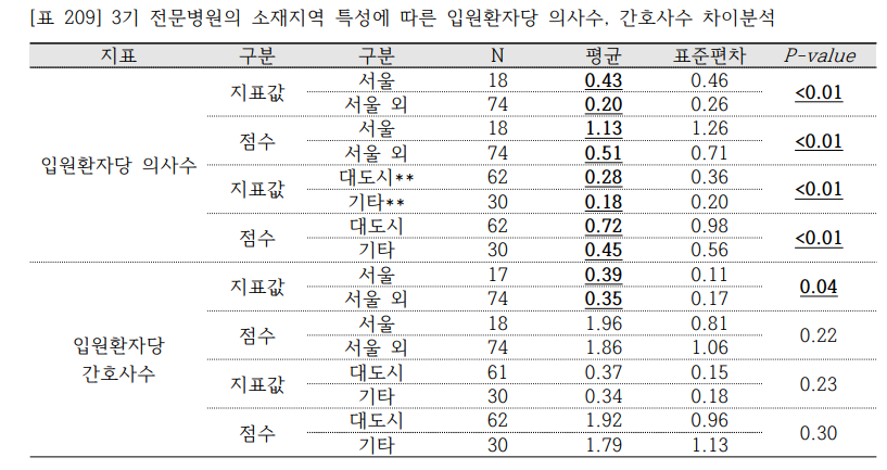 ƯÈ÷ ´ëºÎºÐÀÇ Æò°¡ÁöÇ¥¿¡¼ ±âº»ÀÌ µÇ´Â ‘ÀÔ¿øÈ¯ÀÚ´ç ÀÇ»ç ¼ö’´Â Áö¿ªº° ÆíÂ÷°¡ Å« Ç׸ñÀ¸·Î ºÐ¼®µÅ °³¼±ÀÌ ÇÊ¿äÇÑ °ÍÀ¸·Î µå·¯³µ´Ù.
