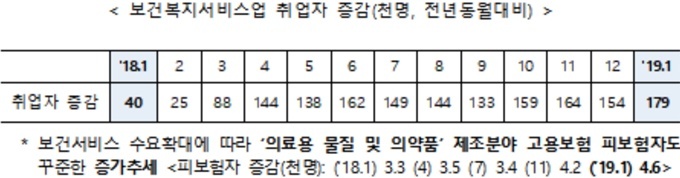 18ÀÏ °í¿ë³ëµ¿ºÎ(°í¿ëºÎ)°¡ ¹ßÇ¥ÇÑ ‘2019³â 1¿ù °í¿ëµ¿ÇâÀÇ ÁÖ¿ä Æ¯Â¡’¿¡ µû¸£¸é Áö³´Þ º¸°Çº¹Áö¼ºñ½º¾÷ Ãë¾÷ÀÚ´Â 17¸¸ 9000¸íÀ¸·Î, Áö³ÇØ 12¿ùº¸´Ù 2¸¸ 5000¸í °¡·® ´Ã¾ú´Ù. Áö³ÇØ 2¿ù ÀÌ·¡ ²ÙÁØÇÑ Áõ°¡¼¼´Ù.