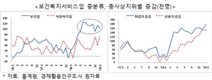ÀÚµ¿Â÷·ÀüÀÚºÎǰ µî Á¦Á¶¾÷ÀÌ ºÎÁøÇÑ °¡¿îµ¥, º¸°Ç·º¹Áö¼ºñ½º¾÷ ÀÏÀÚ¸®°¡ Å©°Ô Áõ°¡ÇÑ ÀÌÀ¯·Î´Â ±â´ë¼ö¸í Áõ°¡¿Í °í·ÉÈ µî¿¡ µû¸¥ º¸°Ç·ÀǷἺñ½º ºÐ¾ßÀÇ ¼ö¿ä°¡ È®´ëµÈ µ¥¿¡ µû¸¥ °ÍÀ¸·Î º¸ÀδÙ.