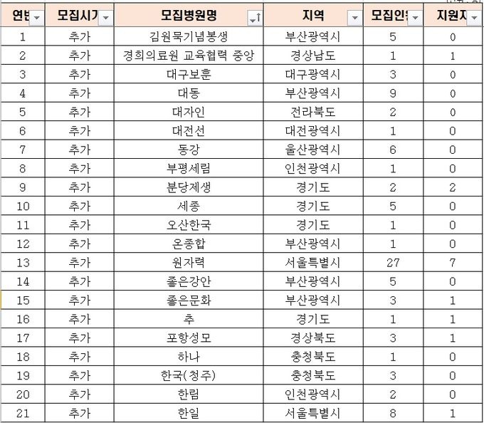 À̹ø Ãß°¡¸ðÁý¿¡´Â 21°³ ¼ö·Ãº´¿øÀÌ 90¸íÀÇ ÀÎÅÏÀ» ¼±¹ßÇÒ ¿¹Á¤À̾ú´Ù. º´¿øº°·Î ÃÖ¼Ò 1¸í¿¡¼ ÃÖ´ë 27¸í±îÁö ¹èÁ¤µÆ´Ù.