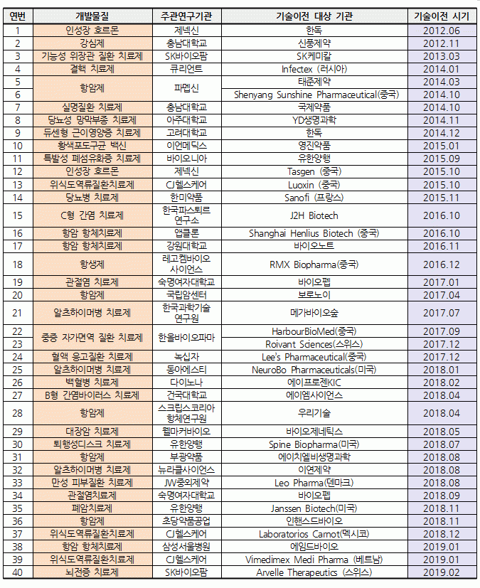 »ç¾÷´Ü Ãâ¹ü ÈÄ ÇöÀç±îÁö ±Û·Î¹ú ±â¼úÀÌÀü 17°Ç, ±¹³» ±â¼úÀÌÀü 23°Ç µî ÃÑ 40°ÇÀÌ ´Þ¼ºµÆÀ¸¸ç, ÃÑ 7Á¶3600¾ï¿ø ±Ô¸ð´Ù. [¾Æ·¡ Ç¥]