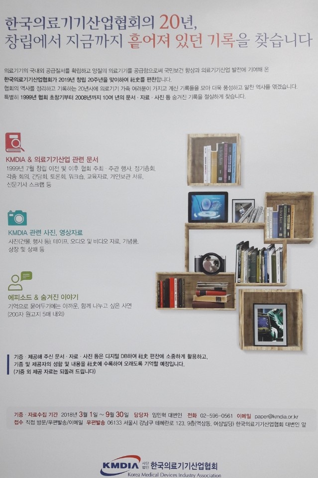 ÀÇ·á±â±â °ü·Ã ¹®¼ ¹× »çÁø, ¿µ»óÀÚ·á, ¿¡ÇǼҵå, ¼û°ÜÁø À̾߱⠵îÀ» ÃѸÁ¶óÇÑ Çùȸ 20ÁÖ³â ÆíÂù»ç°¡ ¾à 6°³¿ùÀÇ ÀÛ¾÷À» °ÅÃÄ Åº»ýÇÒ ¿¹Á¤ÀÌ´Ù.