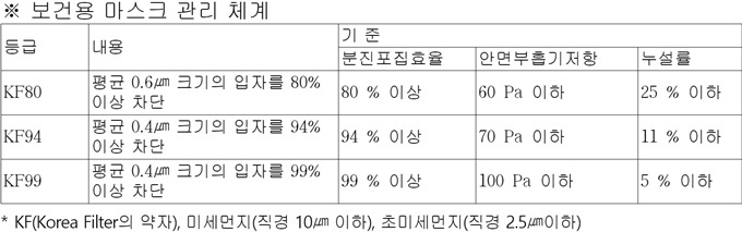 ÇöÀç ½Ä¾àóÀÇ ¸ð°Ç¿ë ¸¶½ºÅ© Çã°¡ ÇöȲÀº ÀÌ´Þ±îÁö 95°³ ¾÷üÀÇ 543ǰ¸ñÀ̰í, Ãʹ̼¼¸ÕÁö µî ºÐÁýÆ÷Áý È¿À² 80%·90%·99%¿¡ µû¶ó °¢°¢ KF80·KF90·KF99 µî±ÞÀ¸·Î °ü¸®µÇ°í ÀÖ´Ù.