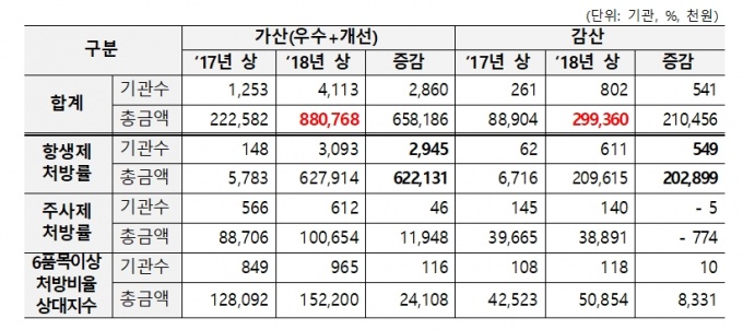 ÀÌ´Â 2¸¸9000¿© °³ ÀÇ¿ø±ÞÀÇ 2¾ï7000¸¸ °ÇÀÇ Áø·áºÐÀ» Åä´ë·Î Ç×»ýÁ¦ 󹿷üÀ» ºñ·ÔÇØ ÁÖ»çÁ¦ 󹿷ü, 6ǰ¸ñ ÀÌ»ó ó¹æºñÀ² µîÀÇ Æò°¡¸¦ ÁøÇàÇÑ °á°ú´Ù.