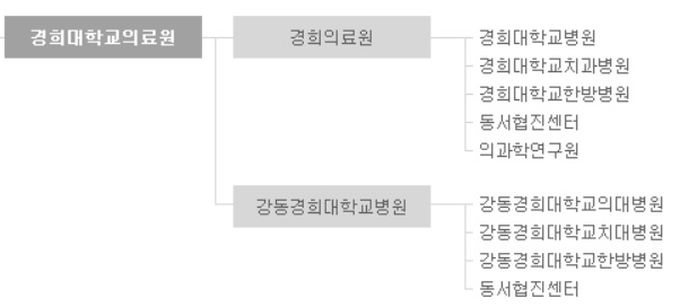 ÇöÀç °æÈñ´ëÇб³ÀÇ·á¿øÀº °æÈñÀÇ·á¿ø°ú °µ¿°æÈñ´ëº´¿øÀ¸·Î ÀÌ¿øÈ µÅ ÀÖ´Ù. Ç¥¸é»óÀ¸·Î´Â ´ÜÀÏ ÀÇ·á¿øÃ³·³ º¸ÀÌÁö¸¸ ½ÇÁúÀûÀ¸·Î´Â µÎ °³ÀÇ ÀÇ·á¿ø °³³äÀÌ´Ù.