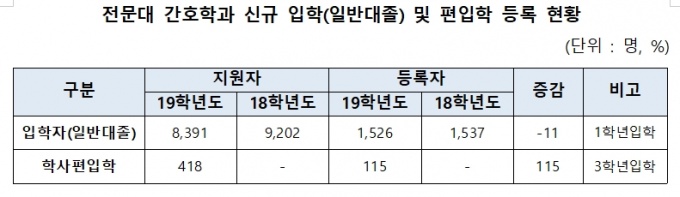2ÀÏ Çѱ¹Àü¹®´ëÇб³À°ÇùÀÇȸ(Àü¹®´ë±³Çù)°¡ ¹ßÇ¥ÇÑ 2019Çг⵵ Àü¹®´ë ÀԽà °á°ú¿¡ µû¸£¸é Áö³ÇØ 115¸íÀÌ ÇлçÆíÀÔÀ» ÀÌ¿ëÇØ Àü¹®´ë °£È£Çаú 3Çг⿡ ÀÔÇÐÇß´Ù.