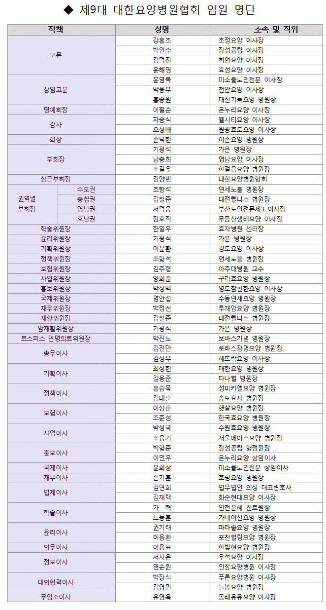 [µ¥Àϸ®¸Þµð ¹Ú´ëÁø ±âÀÚ] ´ëÇÑ¿ä¾çº´¿øÇùȸ(ȸÀå ¼Õ´öÇö) Á¦9´ë ÁýÇàºÎ ²Ù·ÁÁ³´Ù. ¼Õ´öÇö ȸÀåÀº ÁÖ¿ä ÀÓ¿øÁø ±¸¼ºÀ» ¿Ï·áÇϰí, 8ÀÏ ±× ¸í´ÜÀ» °ø°³Çß´Ù.