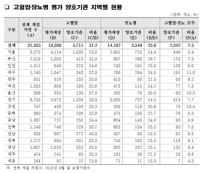 Æò°¡°á°ú°¡ ¾çÈ£ÇÑ ÀÇ¿øÀº °íÇ÷¾Ð 5711°³¼Ò, ´ç´¢º´ 3549°³¼Ò¿´À¸¸ç °¢°¢ Æò°¡ ´ë»ó ÀÇ¿ø Áß 31.2%, 25.0%¸¦ Â÷ÁöÇß´Ù.