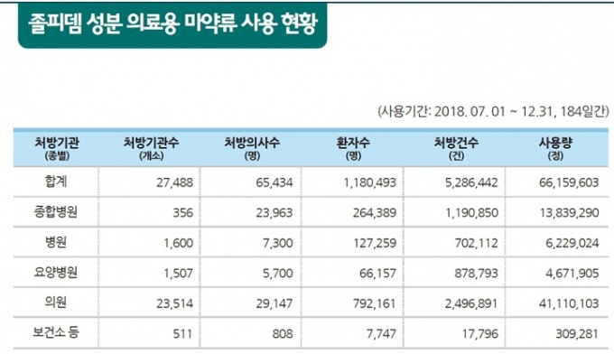 Åë°è¿¡ µû¸£¸é ÇØ´ç ±â°£¿¡ ÀÇ·á¿ë ¸¶¾à·ù¸¦ ÇѹøÀÌ¶óµµ »ç¿ëÇÑ ±¹³» ȯÀÚ´Â 1190¸¸¸íÀ¸·Î, ±¹¹Î 4.4¸í Áß 1¸íÀÌ »ç¿ë °æÇèÀÌ ÀÖÀ¸¸ç, ¿©¼º(58%)ÀÌ ³²¼º(42%)º¸´Ù ¸¹ÀÌ »ç¿ëÇÑ °ÍÀ¸·Î ³ªÅ¸³µ´Ù.