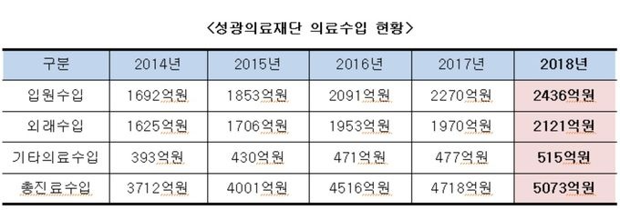 µ¥Àϸ®¸Þµð°¡ Â÷º´¿øÀ» ¿î¿µ ÁßÀÎ ¼º±¤ÀÇ·áÀç´ÜÀÇ Áö³ÇØ ¼ÕÀͰè»ê¼¸¦ ºÐ¼®ÇÑ °á°ú 2018³â ÀÇ·á¼öÀÔÀÌ 5073¾ï5600¸¸¿øÀ» ±â·ÏÇß´Ù.