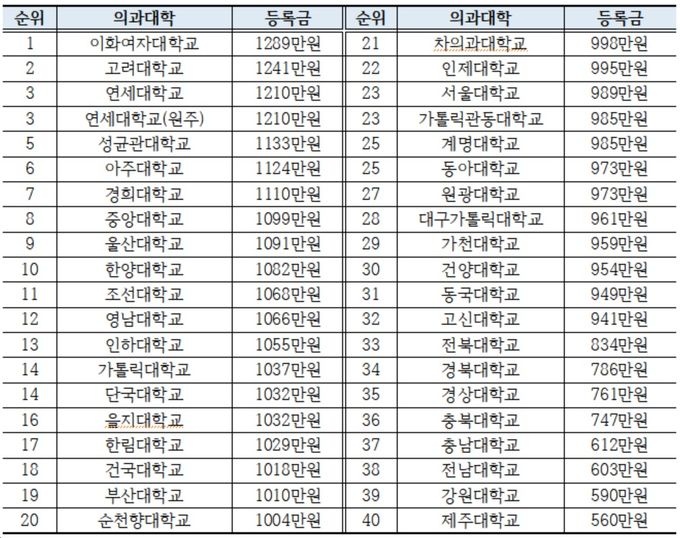 ´ëºÎºÐÀÇ Àǰú´ëÇÐÀÌ Áö³ÇØ¿¡ ÀÌ¾î µî·Ï±ÝÀ» µ¿°áÇÑ °¡¿îµ¥ ÀÌÈ¿©´ë°¡ 1289¸¸¿øÀ¸·Î 40°³ ´ëÇÐ Áß °¡Àå ³ô¾Ò´Ù.