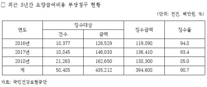 7ÀÏ ±¹È¸ º¸°Çº¹ÁöÀ§¿øÈ¸ ¼Ò¼Ó ÃÖµµÀÚ ¹Ù¸¥¹Ì·¡´ç ÀÇ¿øÀÌ ±¹¹Î°Ç°º¸Çè°ø´ÜÀ¸·ÎºÎÅÍ Á¦Ãâ ¹ÞÀº ‘ÃÖ±Ù 3³â °£ ¿ä¾ç±â°üÀÇ ¿ä¾ç±Þ¿©ºñ¿ë ȯ¼ö°áÁ¤ ¹× ¡¼öÇöȲ’¿¡ µû¸£¸é ÃÖ±Ù 3³â °£ ºÎ´çû±¸ »ç·Ê´Â ÃÑ 5848¸¸ 5000°ÇÀ̾ú°í, ±Ý¾×Àº ¾à 4352¾ï¿ø¿¡ ´ÞÇß´Ù.