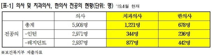 ÀÌ ¶§¹®¿¡ ÇöÀç Ä¡°úÀÇ»ç 1221¸í ¹× ÇÑÀÇ»ç 978¸í µîÀº Àü°øÀǹý Àû¿ëÀ» ¹ÞÁö ¸øÇÏ´Â ½ÇÁ¤ÀÌ´Ù.