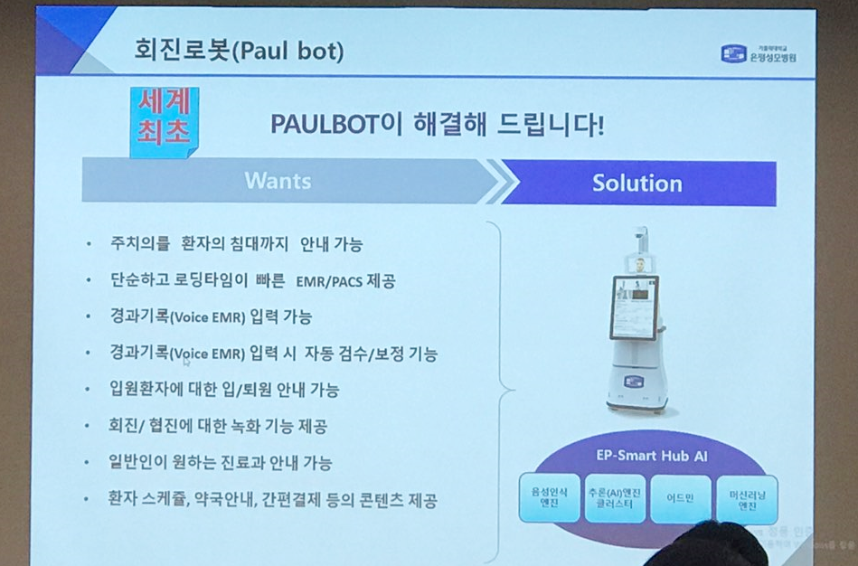 À̹ø¿¡ º´¿øÀÌ µµÀÔÇÑ Àåºñ´Â ȯÀÚ¸¦ À§ÇÑ ¾È³»·Îº¿ ‘¸¶¸®¾Æ(Maria)’¿Í ȸÁø·Îº¿ ‘ÆÄ¿ï(Paul)’ÀÌ´Ù. ÀÌ °¡¿îµ¥¼µµ ÆÄ¿ïÀº ±¹³» óÀ½À¸·Î ½ÃµµµÇ´Â ȸÁø º¸Á¶·Îº¿À¸·Î À½¼ºÀÎ½Ä EMR ±â´ÉÀ» žÀçÇϰí ÀÖ´Ù.