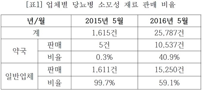 ½ÅºÀÁÖ »ç´Ü¹ýÀÎ Çѱ¹ÀÇ·á±â±âÀ¯ÅëÇùȸ »ç¹«ÃÑÀåÀÌ Á¦½ÃÇÑ ÀÚ·á¿¡ µû¸£¸é Áö³ 2015³â ¾à±¹ÀÇ À¥EDI ½ÃÇà ÀÌÀüÀÇ ¾à±¹ÀÇ ´ç´¢º´ ¼Ò¸ð¼ºÀç·á ÆÇ¸Å ºñÀ²Àº 0.3%·ÀϹݾ÷ü´Â 99.7%¿´À¸³ª, À¥EDI ½ÃÇà 1³â ÈÄ ¾à±¹ÀÇ ÆÇ¸ÅºñÀ²Àº 40.9%·ÀϹݾ÷ü´Â 59.1%¿´´Ù.