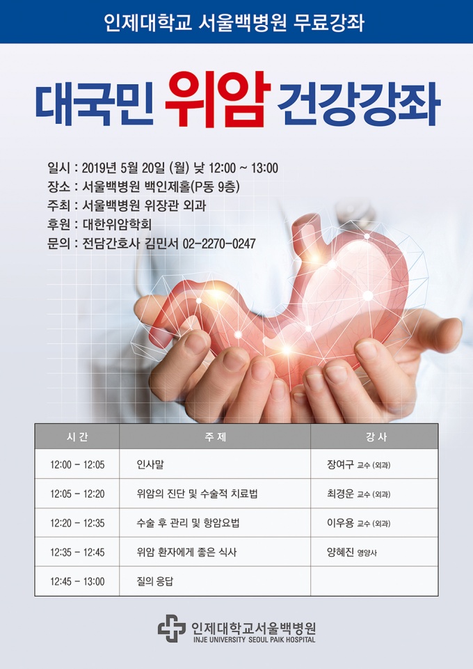 [µ¥Àϸ®¸Þµð ¹ÚÁ¤¿¬ ±âÀÚ] ÀÎÁ¦´ëÇб³ ¼¿ï¹éº´¿øÀÌ 20ÀÏ ³· 12½ÃºÎÅÍ ¿ÀÈÄ 1½Ã±îÁö º´¿ø Pµ¿ ¹éÀÎÁ¦È¦¿¡¼ À§¾Ï °Ç°°Á¸¦ °³ÃÖÇÑ´Ù.