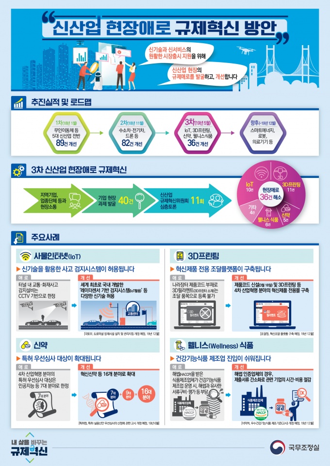 Á¤ºÎ´Â ½Å»ê¾÷±ÔÁ¦Çõ½ÅÀ§¿øÈ¸ÀÇ ½ÉÃþÅä·ÐÀ» °ÅÃÄ ÃÑ 36°ÇÀÇ ¾Ö·Î¸¦ ÇØ¼ÒÇß°í, ÀÌ Áß ½Å¾à ºÎ¹®Àº 5°ÇÀÇ °³¼±ÀÌ ÀÌ·ïÁ³´Ù.