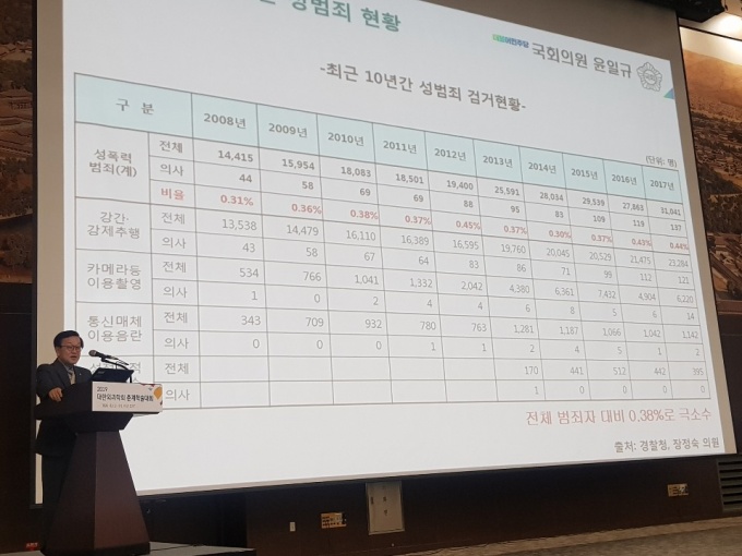 °æÂûû µî¿¡ µû¸£¸é ÃÖ±Ù 10³â °£ Àǻ翡 ÀÇÇÑ ¼º¹üÁË °Ë°Å °Ç¼ö´Â Áö³ 2008³â 44°Ç(Àüü 1¸¸ 4415°Ç·0.31%)¿¡¼ 2017³â 137°Ç(Àüü 3¸¸ 1041°Ç·0.44%)·Î Áõ°¡¼¼¿¡ ÀÖ´Ù. Àüü ¹üÁËÀÚ ´ëºñ 0.38%´Ù.