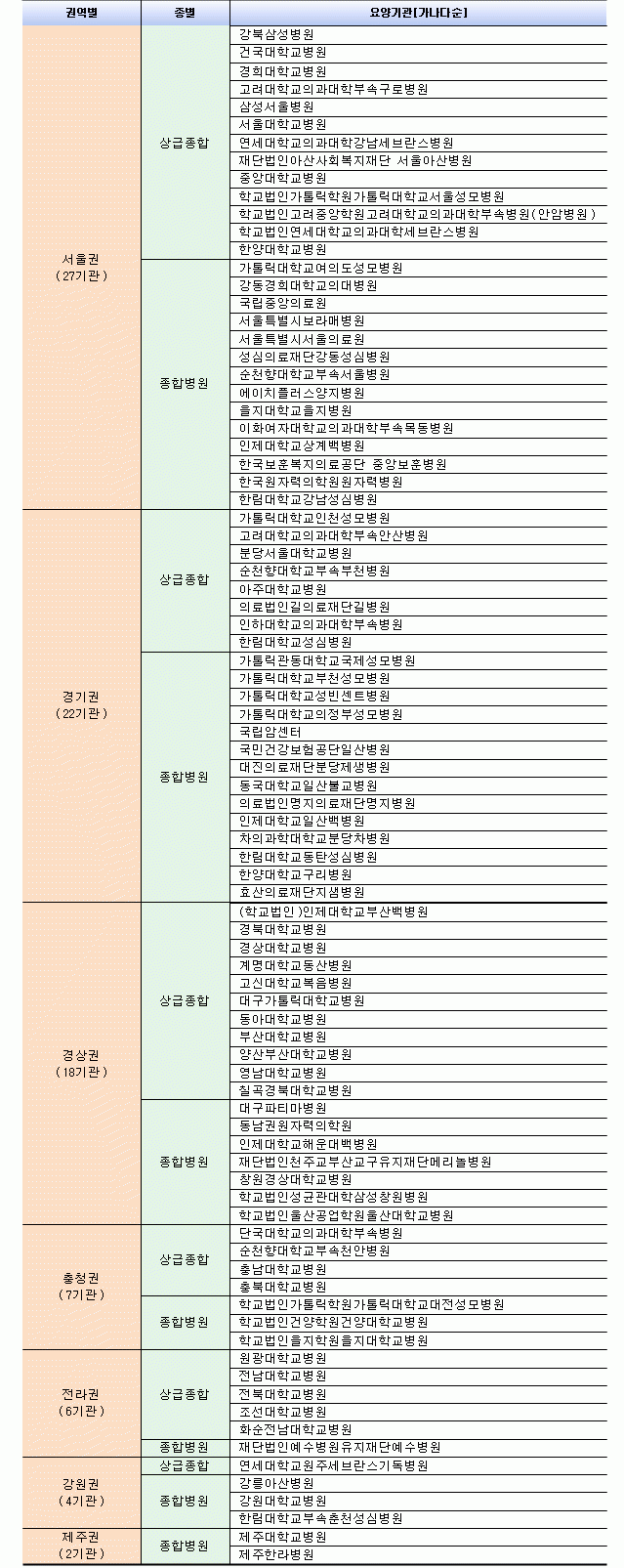 ÀÌ Áß ¡ã¼¿ï±Ç-¿¡ÀÌÄ¡Ç÷¯½º¾çÁöº´¿ø ¡ã°æ±â±Ç-ºÐ´çÁ¦»ýº´¿ø, »ùº´¿ø ¡ã°æ»ó±Ç-¸Þ¸®³îº´¿ø ¡ãÀü¶ó±Ç-¿¹¼öº´¿ø µî Áß¼Òº´¿øµµ Æ÷ÇԵƴÙ.