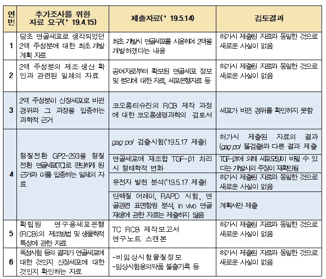¶ÇÇÑ, ¼¼Æ÷ÀÇ È¥ÀÔ °¡´É¼ºÀÌ ÀÖ´Â °æ¿ì¿¡´Â ¿¬±¸°³¹ß°ú Á¦Á¶ µî¿¡ »ç¿ëµÈ ¼¼Æ÷¿¡ ´ëÇÑ À¯ÀüÇÐÀû °èÅë°Ë»ç °á°ú¸¦ Á¦ÃâÇϵµ·Ï ÇÒ ¿¹Á¤ÀÌ´Ù.