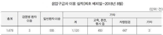 º¸°Çº¹ÁöºÎ°¡ °¨¿°º´ ȯÀÚ À̼Ûü°è ±¸ÃàÀ» ÀÌÀ¯·Î ±¸ÀÔÇÑ À½¾Ð±¸±ÞÂ÷´Â ÃÑ 30´ë·Î, ±¸ÀÔºñ¿ë¸¸ 87¾ï¿øÀÌ ÅõÀԵƴÙ.