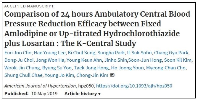 À̹ø¿¡ °ÔÀçµÈ ³í¹®Àº °æÈñ´ë ÀÇ´ë ½ÉÀåÇ÷°ü³»°ú ±èÁ¾Áø ±³¼ö°¡ ¿¬±¸ Ã¥ÀÓÀ» ¸Ã°í, ´ëÇѰíÇ÷¾ÐÇÐȸ ÁÖ°üÀ¸·Î ÁøÇàµÈ ‘The K-Central Study’ °á°ú·Î, ¾Æ¸ðÀßź°ú ARB/HCTZ º¹ÇÕÁ¦ÀÇ 24½Ã°£ ½Ç½Ã°£ Áß½ÉÇ÷¾Ð, Ȱµ¿Ç÷¾Ð, ±×¸®°í ¸ÆÆÄ Àü´Þ¼Óµµ µî ´Ù¾çÇÑ Ç÷¿ªÇÐÀû ÁöÇ¥¸¦ ºñ±³ Æò°¡ÇÑ ¼¼°è ÃÖÃÊÀÇ ¿¬±¸´Ù.