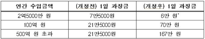 ÁÖ¿ä ³»¿ëÀ» »ìÆìº¸¸é °ú¡±Ý »óÇѾ×Àº 5000¸¸¿ø¿¡¼ 3¾ï¿øÀ¸·Î Á¶Á¤µÈ´Ù. °ú¡±Ý »êÁ¤±âÁØÀº ¾÷¹«Á¤Áö±â°£¿¡ 1ÀÏ´ç °ú¡±ÝÀ» °öÇÑ ±Ý¾×ÀÌ´Ù.