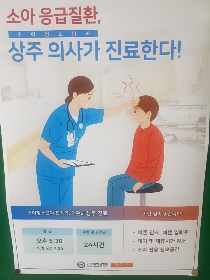 4ÀÏ ÇѾç´ëÀÇ·á¿ø¿¡ µû¸£¸é ÇѾç´ëº´¿øÀº ÃÖ±Ù ¼Ò¾ÆÃ»¼Ò³â°ú ÀÇ·áÁø »óÁÖ¸¦ ÅëÇØ ¼Ò¾Æ ÀÀ±ÞÁúȯÀ» ´ã´çÅä·Ï ÇÑ °ÍÀ¸·Î ÆÄ¾ÇµÆ´Ù. ÀÇ·áÁøÀº ÆòÀÏ ¿ÀÈÄ 5½Ã 30ºÐºÎÅÍ ´ÙÀ½³¯ ¿ÀÀü 7½Ã 30ºÐ±îÁö ¾ß°£±Ù¹«¸¦ Çϰí, ÁÖ¸» ¹× °øÈÞÀÏ¿¡´Â 24½Ã°£ ±³´ë·Î ±Ù¹«ÇÑ´Ù.