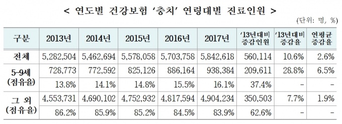 [µ¥Àϸ®¸Þµð ¹Ú±Ùºó ±âÀÚ] ¿¬°£ 580¸¸¸íÀÌ ÃæÄ¡·Î Ä¡°ú¸¦ ã´Â °ÍÀ¸·Î ³ªÅ¸³µ´Ù. ÃëÇп¬·É±âÀÎ ¸¸ 5∼9¼¼ ¾î¸°ÀÌ´Â 10¸í Áß 4¸íÀÌ ÃæÄ¡ Ä¡·á¸¦ ¹Þ¾Ò´Ù.
