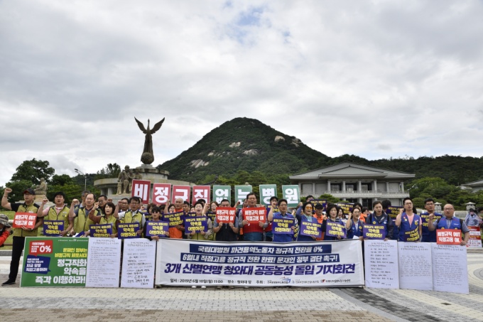 ÆÄ¾÷¿¡ Âü¿©ÇÑ ºñÁ¤±ÔÁ÷µéÀÇ °è¾àÀÌ ¸¸·áµÇ´Â ÀÌ´Þ ¸»±îÁö º´¿ø°ú Á¤ºÎºÎó Ãø¿¡¼ ÇØ°áÃ¥À» ³»³õÀ» °ÍÀ» ¿ä±¸ÇßÁö¸¸ º°´Ù¸¥ ´ëÀÀÀÌ ¾øÀÚ ÀÌ °°Àº ¿òÁ÷ÀÓ¿¡ ³ª¼± °ÍÀÌ´Ù.