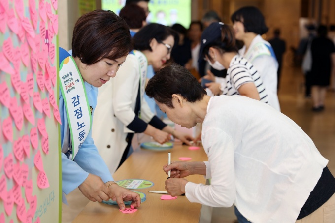 À̹ø Ä·ÆäÀÎÀº °¨Á¤³ëµ¿ÀÚ º¸È£¸¦ À§ÇÑ »ê¾÷¾ÈÀüº¸°Ç¹ý °³Á¤¿¡ µû¶ó ÃßÁøµÆ´Ù. ÀÓÁ÷¿øÀ» ºñ·ÔÇÑ Âü°¡ÀÚµéÀº ¼·Î °Ý·Á¿Í °¨»çÀÇ ¸Þ¼¼Áö¸¦ ³ª´©°í ÇöÀå¿¡¼ ½ºÆ®·¹½º ÃøÁ¤µµ Çß´Ù.