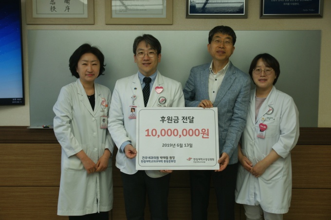 [µ¥Àϸ®¸Þµð ¹ÚÁ¤¿¬ ±âÀÚ] ÇѸ²´ëÇб³ Àǰú´ëÇÐ 7±â Ãѵ¿¹®È¸ ¹ÚŸ² ȸÀå(°Ç¿ì³»°úÀÇ¿ø ¿øÀå)Àº ÃÖ±Ù ÇѸ²´ëÇб³¼º½Éº´¿ø(º´¿øÀå À¯°æÈ£)¿¡ ÁßÁõÁúȯÀÚ Ä¡·á¸¦ À§ÇÑ ÈÄ¿ø±ÝÀ» Àü´ÞÇß´Ù.