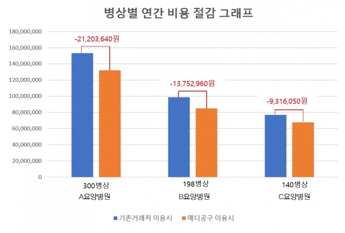 ƯÈ÷ ÇØ´ç ¼Ò¸ðǰ °ø±Þ´Ü°¡¸¦ ÇÕÄ£ ¿¬°£ ºñ¿ë Àý°¨ ³»¿ª[»çÁø]À» º¸¸é 300º´»ó ±Ô¹¦ÀÇ ¿ä¾çº´¿øÀº 2120¸¸3640¿ø, 198º´»óÀº 1375¸¸2960¿ø, 140º´»óÀº 931¸¸6050¿øÀ» ¾Æ³¥ ¼ö ÀÖ¾ú´Ù.