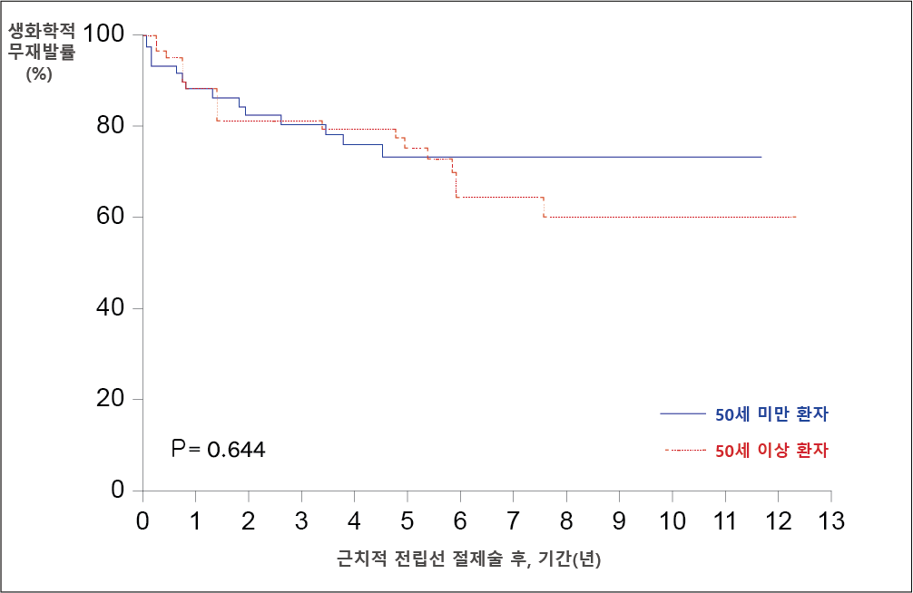 ±× °á°ú, ‘ÀþÀº Àü¸³¼±¾Ï ȯÀÚ´Â ¿¹Èİ¡ ÁÁÀ» °Í’À̶ó´Â ÃÖ±Ù ¼±¸ º¸°í¿Í´Â ´Þ¸® 50¼¼ ¹Ì¸¸ÀÇ ÀþÀº Àü¸³¼±¾Ï ȯÀÚµéÀÇ º´¸® Ư¼ºÀÌ °í·É±º¿¡ ºñÇØ ´õ ÁÁÀº °á°ú¸¦ º¸ÀÌÁö ¾Ê¾Ò´Ù.