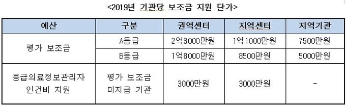 Á¾ÇÕµî±Þ¿¡ µû¶ó Æò°¡ º¸Á¶±Ýµµ Â÷µî Áö±ÞµÈ´Ù. 2019³â ±â°ü´ç º¸Á¶±Ý ´Ü°¡¸¦ »ìÆìº¸¸é ±Ç¿ªÀÀ±ÞÀÇ·á¼¾ÅÍÀÇ °æ¿ì Aµî±ÞÀÌ 2¾ï3000¸¸¿ø, Bµî±ÞÀÌ 1¾ï8000¸¸¿øÀÇ º¸Á¶±Ý ¹Þ´Â´Ù.