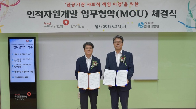 [µ¥Àϸ®¸Þµð ¹Ú±Ùºó ±âÀÚ] ±¹¹Î°Ç°º¸Çè°ø´Ü(ÀÌ»çÀå ±è¿ëÀÍ)Àº 27ÀÏ ÀÎÀç°³¹ß ºÐ¾ß ÀÎÀû·Á¤º¸ µî ±³·ù¸¦ À§ÇØ ±Ù·Îº¹Áö°ø´Ü°ú ¾÷¹«Çù¾àÀ» ü°áÇß´Ù.