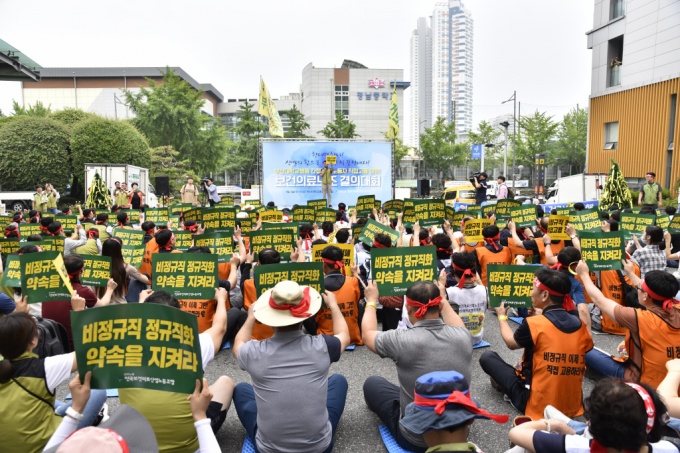 [µ¥Àϸ®¸Þµð ¹ÚÁ¤¿¬ ±âÀÚ] º¸°ÇÀÇ·á³ëÁ¶(À§¿øÀå ³ª¼øÀÚ)´Â 3ÀÏ ºÎ»ê´ëÇб³º´¿ø º»°ü ¾Õ¿¡¼ ºñÁ¤±ÔÁ÷ÀÇ Á¤±ÔÁ÷ȸ¦ À§ÇÑ º»°ÝÀûÀÎ ÅõÀïÀ» ¼±Æ÷Çß´Ù.