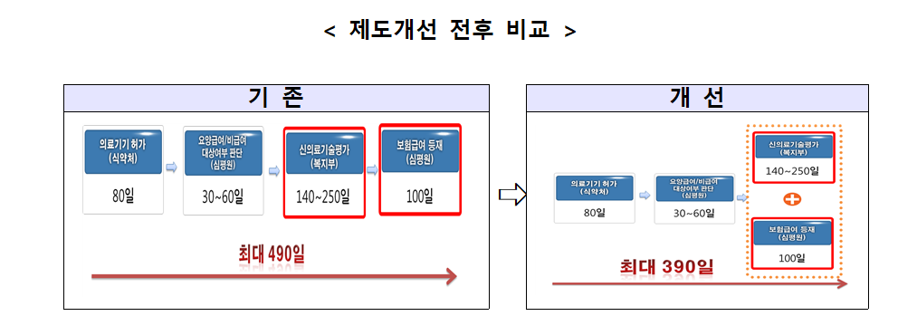 ½ÅÀÇ·á±â¼úÆò°¡¿Í º¸ÇèµîÀç½É»çÀÇ µ¿½Ã ÁøÇàÀ» ÅëÇØ º¸ÇèµîÀç ½É»ç¸¦ ½ÅÀÇ·á±â¼úÆò°¡ ±â°£ ³»¿¡ ÁøÇà½ÃÅ´À¸·Î½á, ±âÁ¸ ¼øÂ÷ ÁøÇà ½Ã ¹ß»ýÇß´ø º¸ÇèµîÀç ½É»ç±â°£(ÃÖ´ë 100ÀÏ) ¸¸ÅÀ» ÁÙÀÌ°Ô µÇ´Â °ÍÀÌ´Ù.