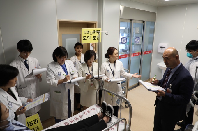 ¹ÚÅÂö º´¿øÀåÀº “À̹ø ½ÅÁ¾°¨¿°º´ ¸ðÀÇÈÆ·ÃÀ» ÅëÇØ ºÎ¼º°·Î ÇÁ·Î¼¼½º¸¦ Àç Á¡°ËÇØ ½ÇÁ¦ ½ÅÁ¾°¨¿°º´ ÀǽÉȯÀÚ°¡ ¿ø³»¿¡ ¹æ¹®ÇßÀ» °æ¿ì ±³Á÷¿øµéÀÇ Áï°¢ÀûÀÎ ´ëÀÀ ¹× ºü¸¥ °Ý¸® Á¶Ä¡°¡ ÀÌ·ïÁú ¼ö ÀÖÀ» °ÍÀ¸·Î ±â´ëÇÑ´Ù”°í °Á¶Çß´Ù. |