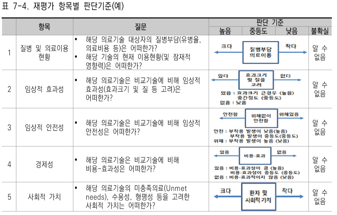 NECA¿¡ µû¸£¸é ±Þ¿© Ç׸ñÀÇ °æ¿ì ¡ãÇöÁ¸ÇÏ´Â ÀÇ·á±â¼ú °¡¿îµ¥ Ä¡·á(ȤÀº °Ë»ç) ´ë¾ÈÀÌ ÀÖ´Â ÀÇ·á±â¼ú ¡ãÃÖ±Ù 5³â À̳» »ç¿ëºóµµÀÇ ÇöÀúÇÑ º¯È(Áõ°¡/°¨¼Ò)¸¦ º¸ÀÌ´Â °æ¿ì ¡ã°Ç°º¸ÇèÁö¿ø ±Ô¸ð°¡ ±ÞÁõÇÏ°í »çȸÀû ÀÇ·áºñ¿ë ºÎ´ãÀÌ °úµµÇϰųª ºÎÀûÀýÇÏ´Ù°í ÆÇ´ÜµÇ´Â °æ¿ì µîÀÌ °í·Á ´ë»ó¿¡ Æ÷ÇԵȴÙ. ÀÌ´Â Àü¹ÝÀûÀÎ ÀçÆò°¡ ´ë»ó Èĺ¸ ±â¼ú ¼±Á¤ ±âÁØÀ̱⵵ ÇÏ´Ù.