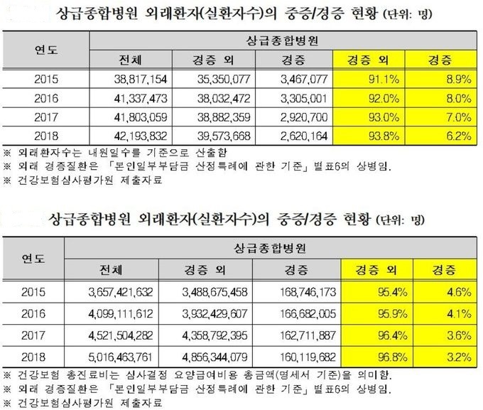 »ó±ÞÁ¾ÇÕº´¿ø ¿Ü·¡È¯ÀÚ¼ö´Â 2015³â 3881¸¸¸í¿¡¼ 2018³â 4219¸¸¸íÀ¸·Î ´Ã¾ú´Ù. ÁßÁõȯÀÚ ºñÀ²Àº 2015³â 91.1%¿¡¼ 2018³â 93.8%·Î Áõ°¡ÇÑ ¹Ý¸é °æÁõȯÀÚ´Â 8.9%¿¡¼ 6.2%·Î ÁÙ¾ú´Ù.