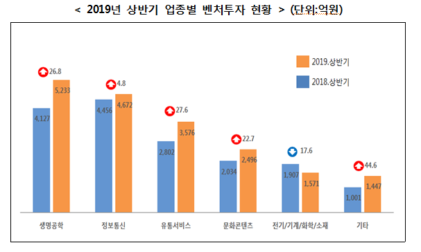 Áß¼Òº¥Ã³±â¾÷ºÎ´Â 26ÀÏ 2019³â »ó¹Ý±â º¥Ã³ÅõÀÚ ÇöȲÀ» °ø°³Çϸç "4Â÷ »ê¾÷Çõ¸í ºÐ¾ß¿¡ ´ëÇÑ °ü½ÉÀÌ ³ô¾ÆÁö¸é¼ Àüü ÅõÀÚ±Ý¾× Áß »ý¸í°øÇÐ(¹ÙÀÌ¿À·ÀÇ·á) 27.5%, Á¤º¸Åë½Å(ICT) 24.6% µîÀÌ ³ôÀº ºñÀ²À» Â÷ÁöÇϰí ÀÖ´Ù"°í ¹àÇû´Ù.