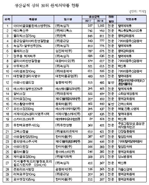 ¿ÏÁ¦ÀǾàǰ °¡¿îµ¥ Àü¹®ÀǾàǰÀº 15Á¶5852¾ï¿ø(84.0%), ÀϹÝÀǾàǰÀº 2Á¶9586¾ï¿ø(16.0%)ÀÌ »ý»êµÆÀ¸¸ç, Àü¹®ÀǾàǰÀÇ »ý»ê½ÇÀûÀº 2017³â(14Á¶5949¾ï¿ø) ´ëºñ 6.8% Áõ°¡Çß´Ù.