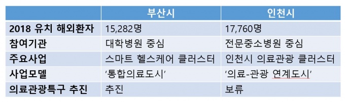 ºÎ»ê°ú ÀÎõ¿¡ ƯÈ÷ °ü½ÉÀÌ ¸ðÀÌ´Â ±î´ßÀº ÇØ¿ÜȯÀÚ Á¢±Ù¼ºÀÌ ³ô´Ù´Â °øÅëÁ¡À» °¡Áö°í ÀÖÀ¸¸é¼µµ ÀÇ·á°ü±¤ Ȱ¼ºÈ¿¡ À־ ¼·Î ´Ù¸¥ Àü·«À» ÃëÇϰí À־Ù. µÎ Áö¿ª Ư»ö°ú ÀÇ·áÀÎÇÁ¶ó ¹× º´¿øµéÀÇ Æ¯Â¡ÀÌ »óÀÌÇϱ⠶§¹®À¸·Î Ç®À̵ȴÙ.