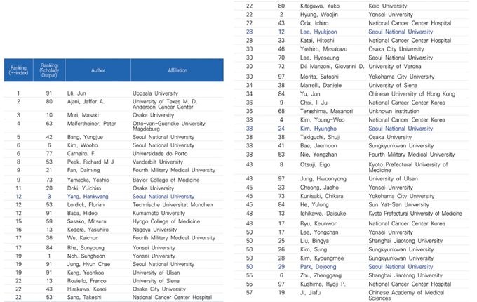 ¼¼°è ÃÖ´ë ÀÇÇÐ ÃâÆÇ»çÀÎ ¿¤½ººñ¾î(Elsevier)°¡ Áý°èÇÏ´Â H-À妽º(H-index : ¿¬±¸ »ý»ê¼º‧¿µÇâ·Â Áö¼ö)¸¦ ºÐ¼® °á°ú, »óÀ§ 50¸í Áß ¹«·Á 21¸íÀÌ Çѱ¹ ÀÇÇÐÀÚ¿´´Ù.