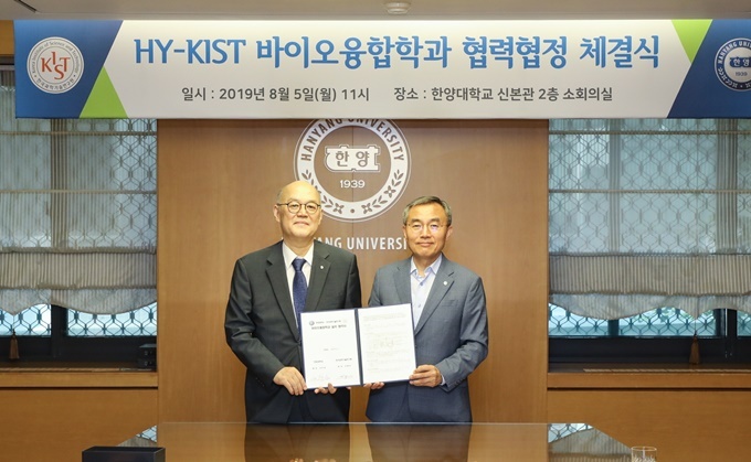[µ¥Àϸ®¸Þµð °íÀç¿ì ±âÀÚ] ÇѾç´ëÇб³´Â 5ÀÏ ¼¿ï ¼ºµ¿±¸ ¼¿ïÄ·ÆÛ½º¿¡¼ Çѱ¹°úÇбâ¼ú¿¬±¸¿ø°ú ÇÔ²² ´ëÇпø °úÁ¤ÀÎ ‘ÇѾç´ë-KIST ¹ÙÀÌ¿ÀÀ¶ÇÕÇаú’ °³¼³À» À§ÇÑ Çù¾àÀ» ü°áÇß´Ù.