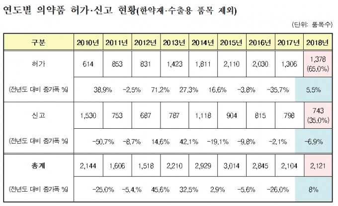 [µ¥Àϸ®¸Þµð ¾çº¸Çý ±âÀÚ] Áö³ÇØ ±¹³» °³¹ß º¹ÇÕÁ¦ ÀǾàǰ Çã°¡´Â Áõ°¡Çϰí, Á¦³×¸¯ ÀǾàǰ Çã°¡´Â ÁÖÃãÇÑ °ÍÀ¸·Î ³ªÅ¸³µ´Ù.