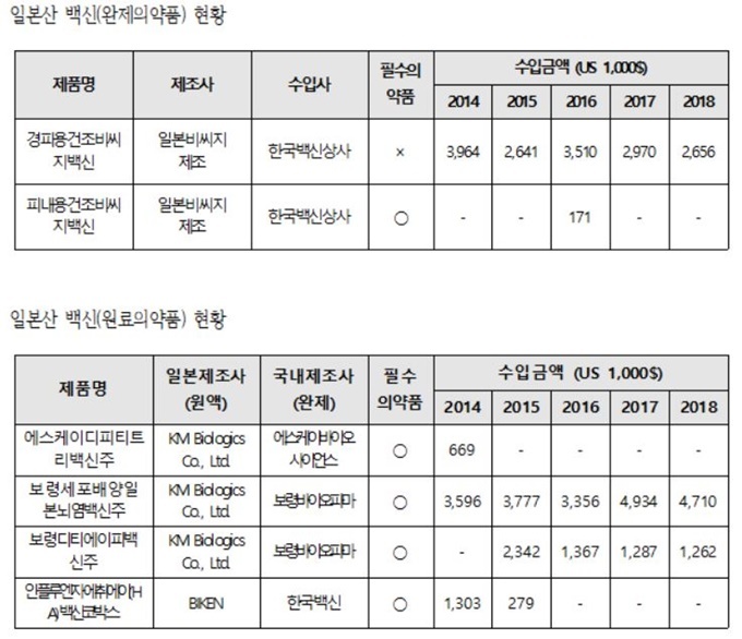 ÀϺ» Á¦¾à»çÀÇ ¿À¸®Áö³Î ÀǾàǰ ´ëºÎºÐÀº ´Ù¸¥ ³ª¶ó Á¦Ç°À¸·Î ´ëü°¡ °¡´ÉÇÏÁö¸¸, ³ú¿°¹é½Å°ú °æÇÇ¿ë BCG ¹é½Å, ÆÄ»ódz ¹é½Å, ¹éÀÏÇØ ¹é½Å µîÀº ÀϺ» ÀÇÁ¸µµ°¡ ³ô´Ù.
