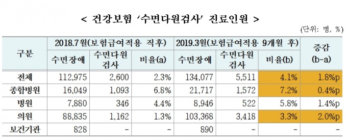 ÁÖ¸ñÇÒ ºÎºÐÀº Áö³ÇØ 7¿ù ±Þ¿©ÈµÈ ¼ö¸é´Ù¿ø°Ë»ç ½ÃÇà·ü º¯È´Ù. º¸Çè±Þ¿©Àû¿ë ÈÄ 9°³¿ùÀÌ Áö³ ½ÃÁ¡ÀÎ 2019³â 3¿ù ¼ö¸éÀå¾Ö ȯÀÚ Áß ¼ö¸é´Ù¿ø°Ë»ç¸¦ ¹ÞÀº ȯÀÚÀÇ Áõ°¡ÆøÀº ÀÇ¿ø±ÞÀÌ °¡Àå °¡ÆÈ¶ú´Ù.